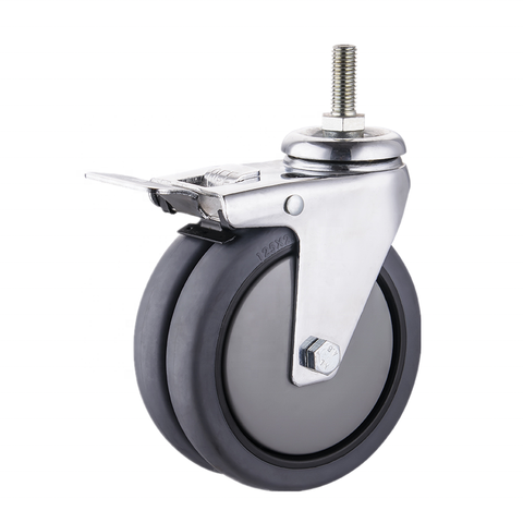 5 pulgadas Industrial M12 tornillo tipo ruedas PP núcleo TPR rodamiento de bolas de doble Bloqueo de rueda doble ruedas gemelas